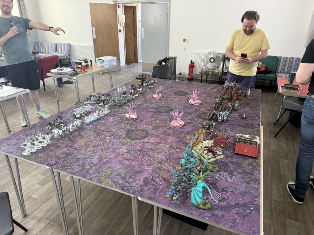 Tentacles smashed across the battlefield, striking at all sides, and the entire game descended into glorious chaos. The centre of the table became a swirling mass of carnage and laughter, made even better thanks to some amazing custom tentacle terrain.